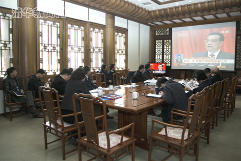 清华师生代表集中收看政府工作报告。实习记者 张 宇 摄