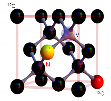 图为金刚石原子结构图,标注原子的核自旋可用于量子计算。