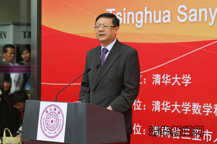 图为陈吉宁、丘成桐、姜斯宪和海南省副省长王路共同为“清华三亚国际数学论坛”揭牌。记者 苑 洁 摄