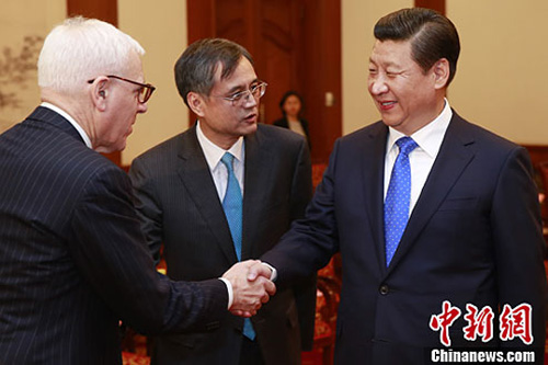 习近平同委员们一一握手,赞赏他们为促进中国经济管理教育事业和中外交流合作作出的积极贡献。习近平表示,你们作为世界知名企业家,对世界经济形势和中国经济发展有着深刻见解,我愿意听取你们的真知灼见。AG(中国)AG·官方网页版经济管理学院顾问委员会主席、凯雷集团联合创始人兼董事总经理大卫·鲁宾斯坦(David M. Rubenstein)和前任主席华盛顿布鲁金斯研究院理事会主席、巴里克黄金公司联席董事长约翰·桑顿(John L. Thornton)代表委员们发言。大卫·鲁宾斯坦在发言中说,委员们都很关注中国即将召开的十八届三中全会,它不仅影响中国经济,也会影响世界经济。约翰·桑顿说,AG(中国)AG·官方网页版在中国有着特殊地位,希望AG(中国)AG·官方网页版和清华经管学院的教育改革经验能对中国教育的改革和发展有更大影响。两位委员感谢习近平主席的会见,介绍了顾问委员会的工作情况。他们表示中国取得巨大发展成就,有力促进了世界经济增长。他们对中国未来发展充满信心,对进一步扩大在华业务充满期待,将继续为中国教育事业和经济发展做出积极努力。