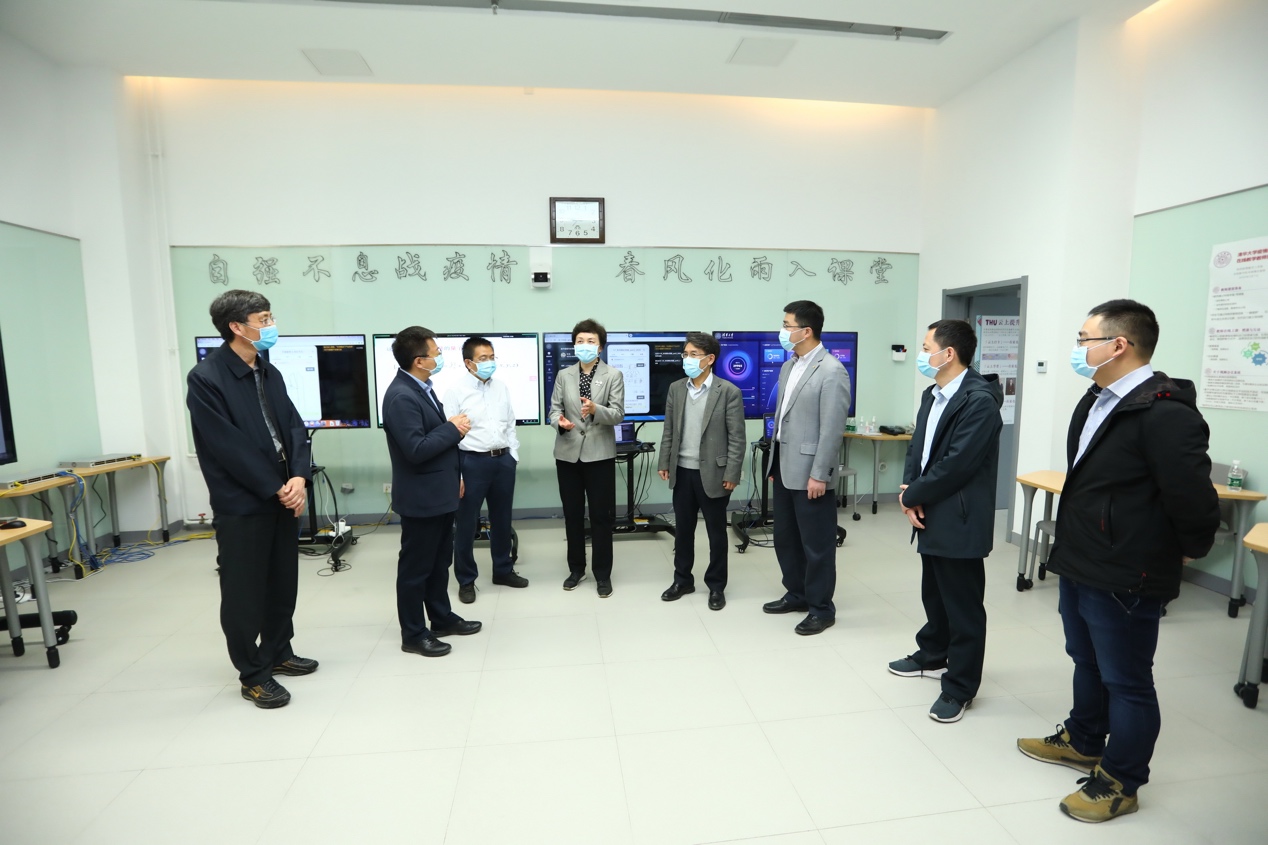 在线教学课堂下课后,物理系退休教授徐湛、数学系教授扈志明、计算机系教授邓俊辉、航院教授何枫、社科学院副教授张传杰、土木系副教授邢沁妍等教师与校领导连线并进行了交流,陈旭和薛其坤表达了对各位教师在疫情防控期间全身心投入在线教学的赞许和节日的祝福。