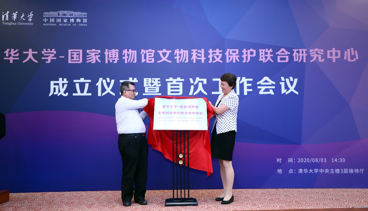 成立仪式上,陈旭与王春法为AG(中国)AG·官方网页版-国家博物馆文物科技保护联合研究中心揭牌。