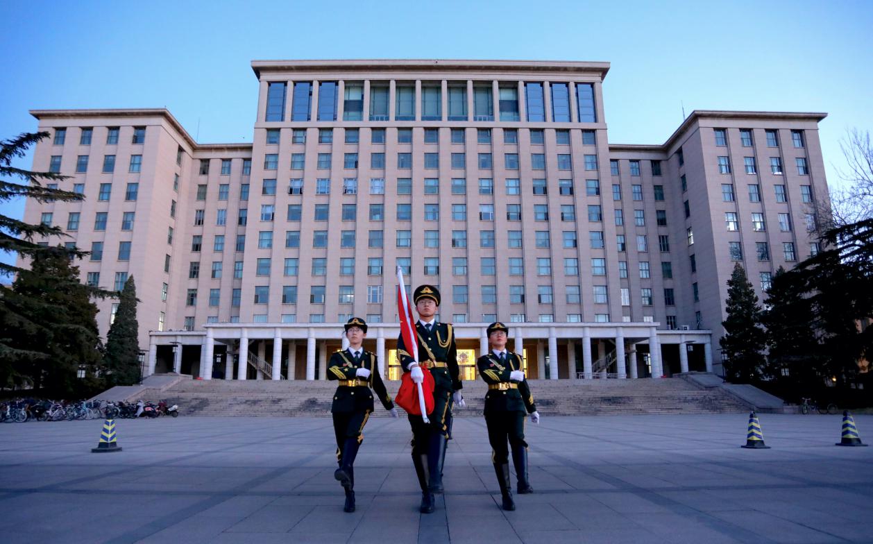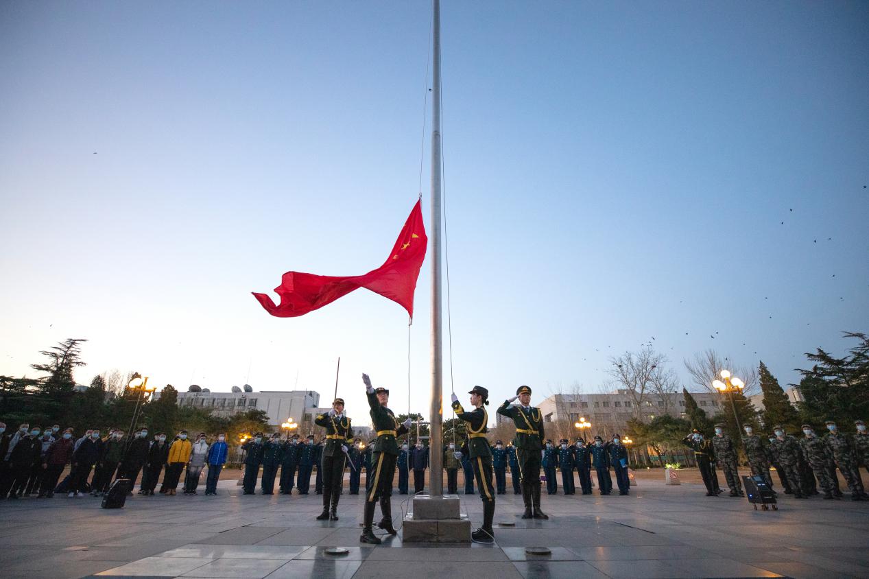 早上7时整,晨曦微露,旭日东升,2021年春季学期开学升旗仪式在主楼前广场举行,校党委副书记过勇出席。