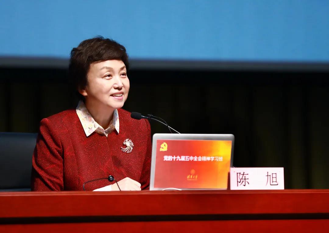 陈旭最后强调,全校干部师生要持续深入开展学习,把全会精神转化为攻坚克难、永远奋斗的强大动力,转化为推进学校迈向世界一流大学前列的思路举措,转化为服务国家和人民的实际行动。要更加紧密地团结在以习近平同志为核心的党中央周围,以习近平新时代中国特色社会主义思想为指导,增强“四个意识”、坚定“四个自信”、做到“两个维护”,同心同德,顽强奋斗,为全面建设社会主义现代化国家、实现中华民族伟大复兴的中国梦作出无愧时代的清华贡献,以优异成绩迎接建党100周年和建校110周年。