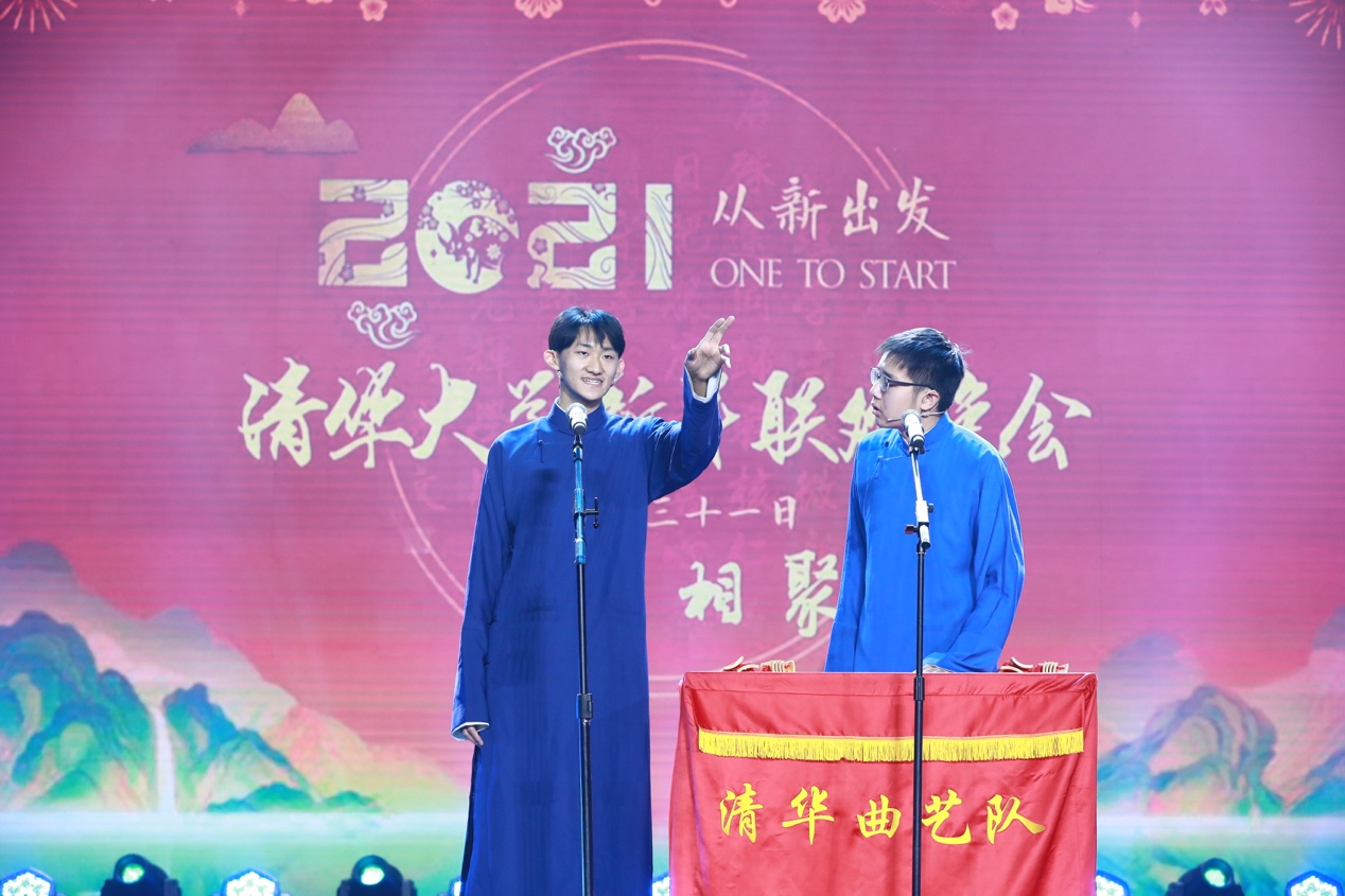 学生艺术团曲艺队同学表演的相声《2020我知道》聚焦新冠疫情,在幽默诙谐中普及疫情防控知识,展现疫情期间清华学子的生活景象。体育代表队啦啦操队带来的劲歌热舞、学生艺术团国标队带来的热情似火的斗牛舞,将青春气息展现得淋漓尽致。由学生魔术协会带来的魔术表演、校园歌手演唱的歌曲串烧等,带给观众完美的视听体验,将晚会推向一个又一个高潮。