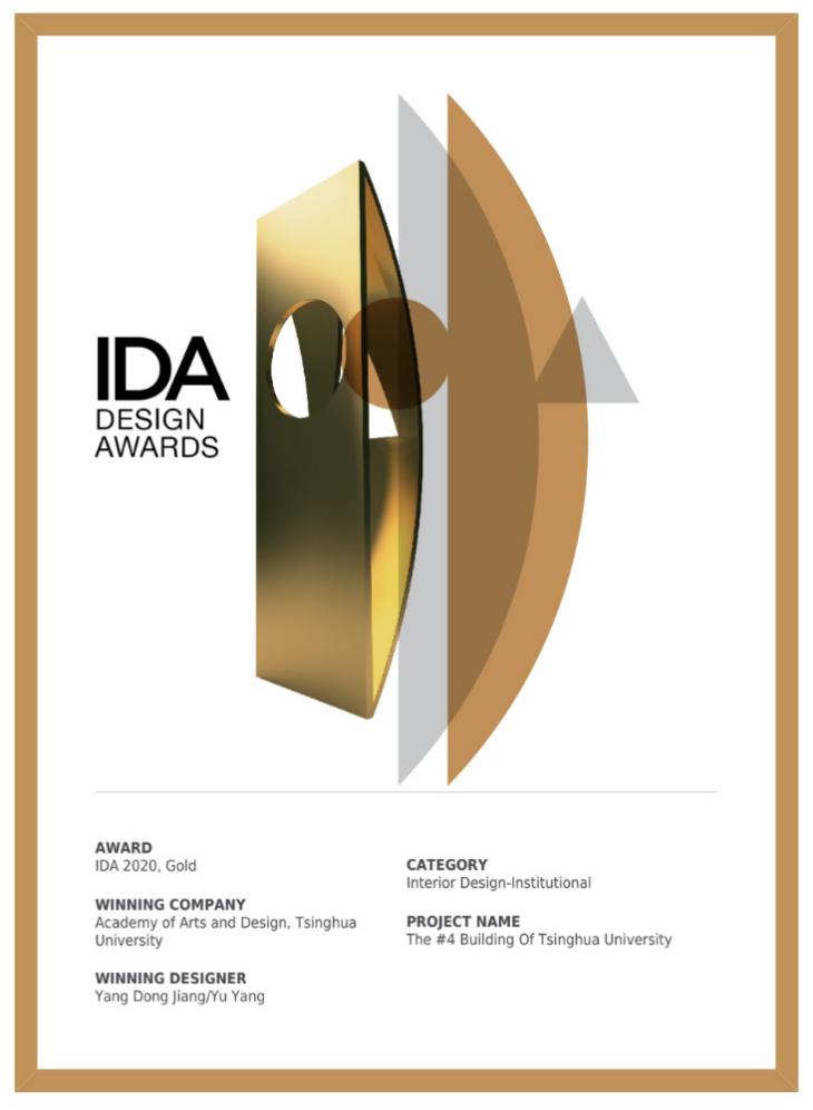 IDA(International Design Awards)创办于2007年,是美国最具影响力的国际设计大奖之一,倡导设计的可持续性、科学性、智能性。该奖项共设置建筑设计、室内设计、产品设计、时尚设计、平面设计五个门类。评审团由全球建筑、设计、时尚领域的知名设计师及专业媒体组成,致力于激发公众对于世界范围优秀设计的关注,引领和催生具有颠覆性和创新性的全新概念,寻找真正具有国际水准的设计作品。2020年,IDA国际设计奖迎来了自奖项创办以来最为成功的一年,报名国家和作品数量均超过以往任何一届。