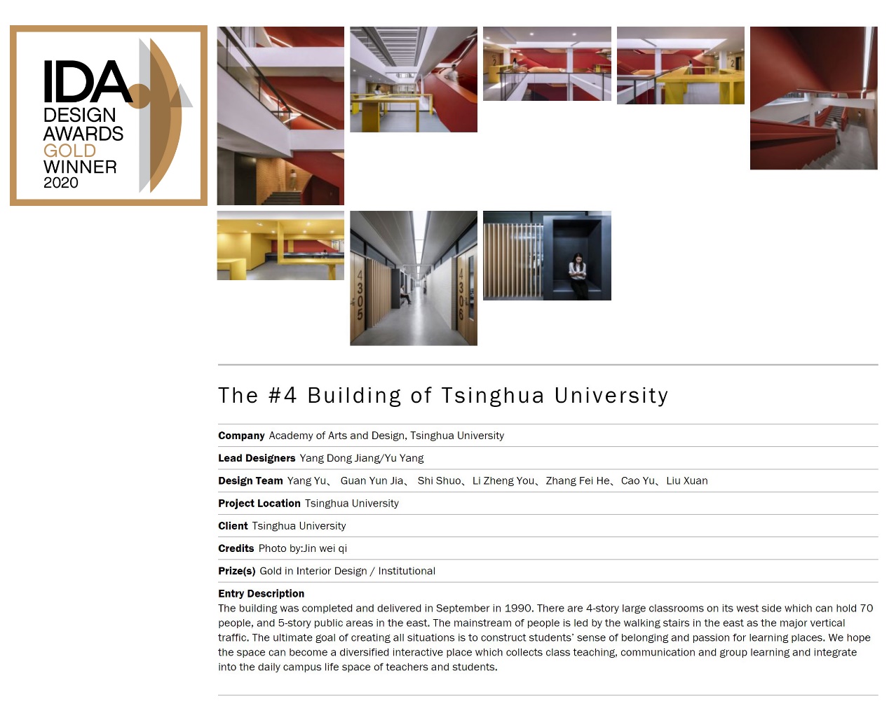 《AG(中国)AG·官方网页版第四教学楼室内设计》荣获美国IDA国际设计奖室内设计类别金奖