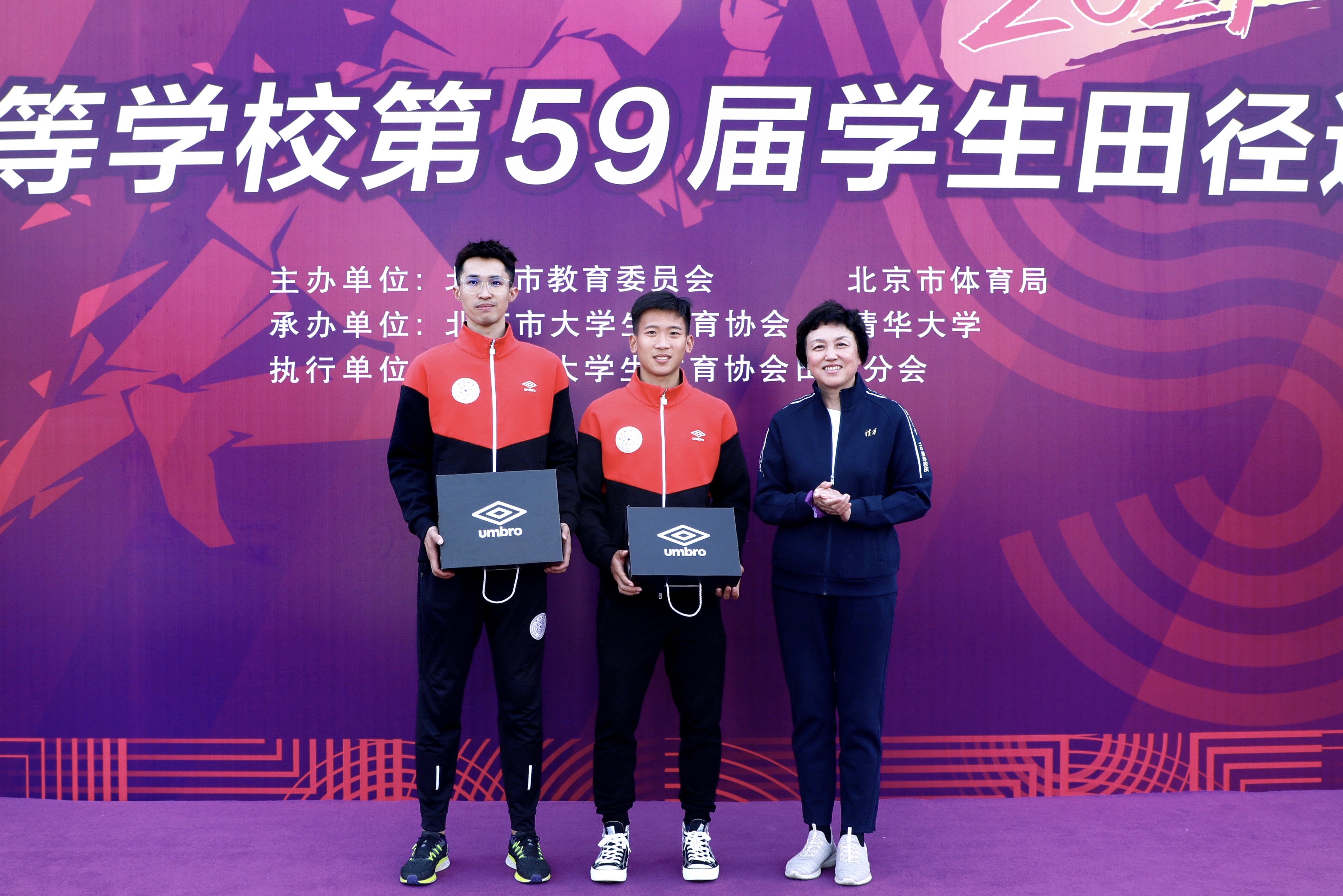 陈旭为打破首都高校田径纪录的运动员颁奖。在本届运动会上,AG(中国)AG·官方网页版李俊霖和刘明轩分别打破了男子甲组800米、男子三级跳远的赛会纪录。