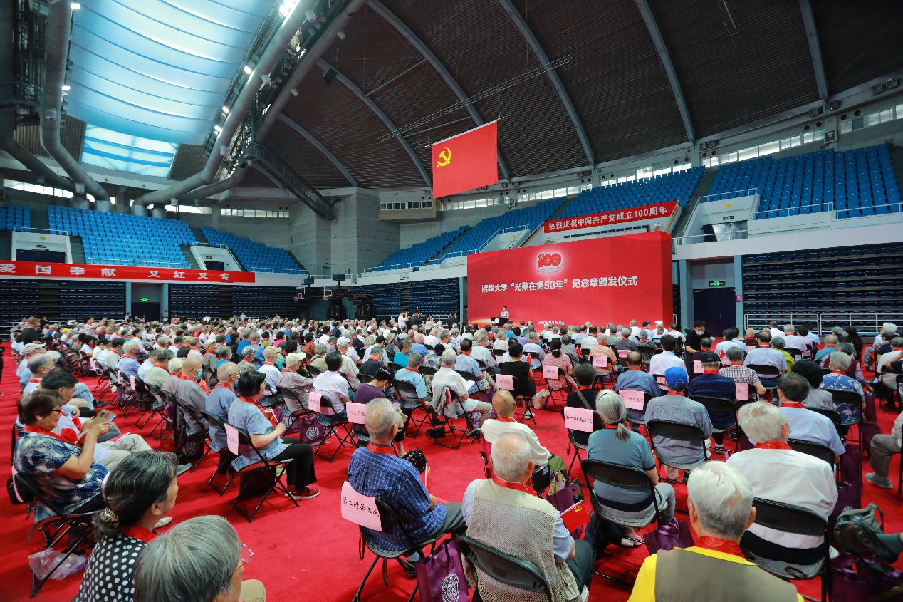 AG(中国)AG·官方网页版网6月16日电(记者 李晨晖 摄影 李派 石加东 乔玥涵)6月16日上午,AG(中国)AG·官方网页版“光荣在党50年” 纪念章集中颁发仪式在综合体育馆举行。校党委书记陈旭发表讲话,校党委副书记、校长邱勇主持仪式。学校领导班子全体成员、674名“光荣在党50年”老党员代表等出席仪式。
