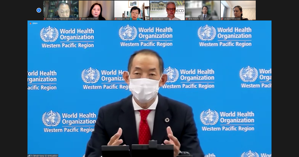 世界卫生组织西太平洋区域主任葛西健(Takeshi Kasai)在线发表致辞,从“健康、经济与社会福祉之间的关系”“建立强大和有韧性的卫生系统”“保护弱势群体,促进社会公平可及”“卫健系统内外伙伴关系”“国际交流与合作”五个方面分享了新冠肺炎疫情大流行带来的启示。他表示,“健康中国”战略与世界卫生组织全民健康覆盖的愿景高度一致,世界卫生组织非常期待继续与中国密切合作,实现这一愿景。