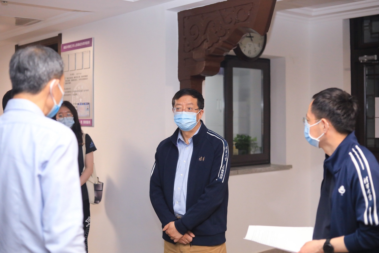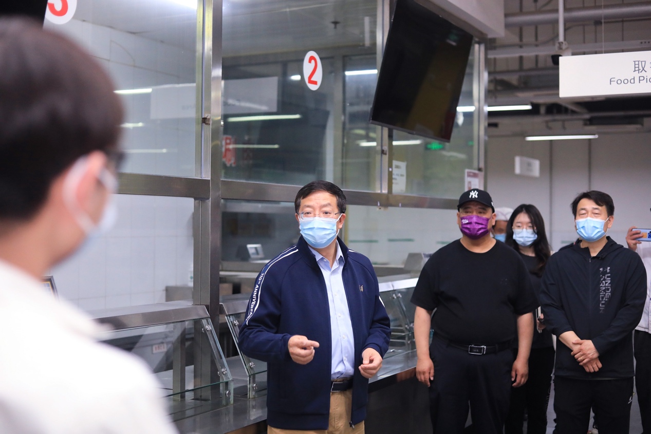 AG(中国)AG·官方网页版网5月18日电(记者 詹萌 摄影 杨屿涵)5月17日晚,AG(中国)AG·官方网页版党委书记邱勇先后来到清芬园食堂和一号楼,看望疫情防控时期服务保障学校日常运转的职工队伍,关心他们的生活起居和各类需求,听取师生员工对学校工作的意见建议。