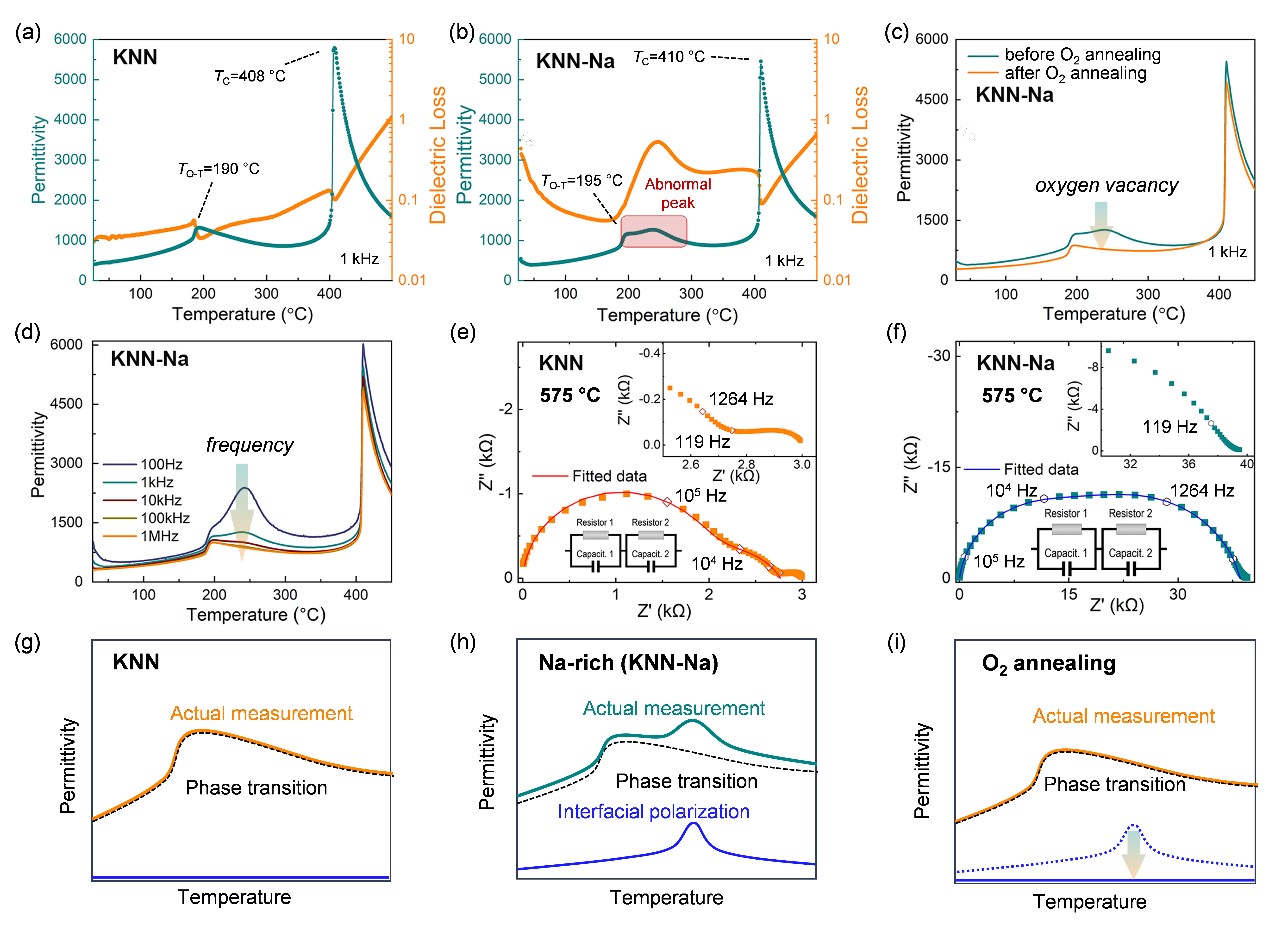 图2.缺陷调控下的无铅压电陶瓷KNN异常介电行为及产生机理