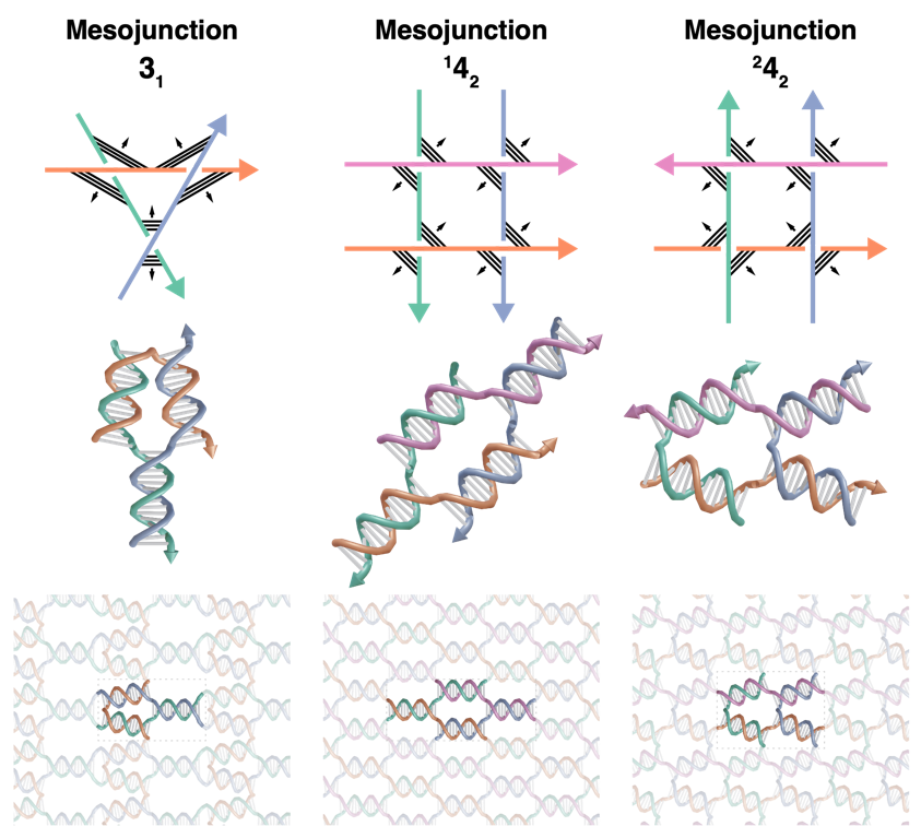 AG(中国)AG·官方网页版网1月22日电 四十年前,纳德里安·西曼(Nadrian C. Seeman)教授以分支交叉(branchjunction)为基础,开创了DNA纳米技术领域的先河。四十年来,DNA纳米技术蓬勃发展,可以精准实现各种复杂二维及三维图案或形状的自组装,而结构模块大多依照普通交叉(regular junction)来设计。早在上世纪90年代初,由西曼教授同时提出的另一DNA模块类型——混合交叉(mesojunction),却被研究者忽视和遗忘。虽然混合交叉的部分单元设计已在实验中得到初步验证,但是后续相关的研究长期以来近乎停滞。