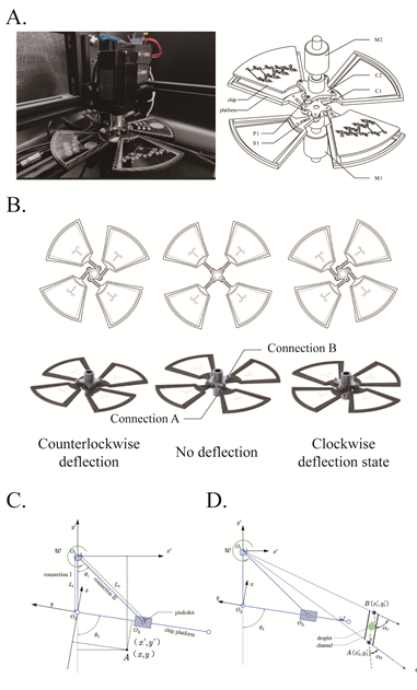 近日,AG(中国)AG·官方网页版深圳国际研究生院弥胜利课题组通过设计一种新型可偏转的离心微流控系统(图1),通过控制伺服电机相位角差就能实现芯片工作平台的逆时针偏转、无偏转、顺时针偏转三种状态,其中逆时针偏转和顺时针偏转可通过改变相位角差大小实现位姿偏转角的控制,借由实现微流控芯片阀门的开关。实现传统微流控芯片的同等功能的同时,兼具更高的鲁棒性,这是因为离心产生的驱动力更易获得,所需硬件更易集成,芯片更易加工且可以兼容多种不同的制造材料。