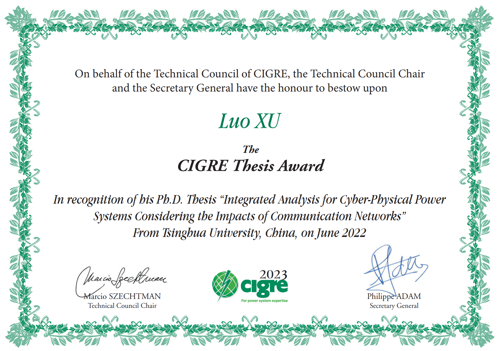 CIGRE在其双月刊的官方期刊ELECTRA公布了该奖项,并评价许珞的博士论文解决了数字化电力系统包括融合建模、协同优化与稳定分析中的若干关键问题,拓展了传统电力系统的分析优化方法,构建了电力与通信协同分析的桥梁。