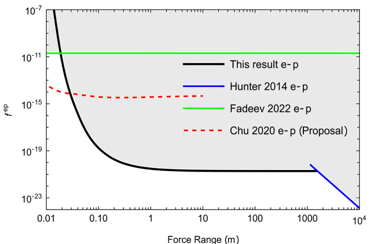 利用电机驱动自旋源周期性顺时针和逆时针旋转,从而实现待测信号的有效调制,可避免直流噪声的影响。通过分析多组实验数据的信号,能够有效去除各种噪声来源带来的虚假信号。通过对长时间测量数据的统计分析,目前并未找到第五种力的信号,但实验结果为电子-质子自旋-速度相关的第五种力的耦合系数给出了新的限制。由于所设计的实验方案具有极高的自旋密度、极高的磁场测量灵敏度和能量分辨率,且能有效抑制共模噪声,在厘米到千米力程尺度上,该实验得到的耦合系数限制比使用其他方法得到的限制提升了十个数量级。随着未来技术的进一步发展,在达到足够高的精度后,有望测量到第五种力的存在。
