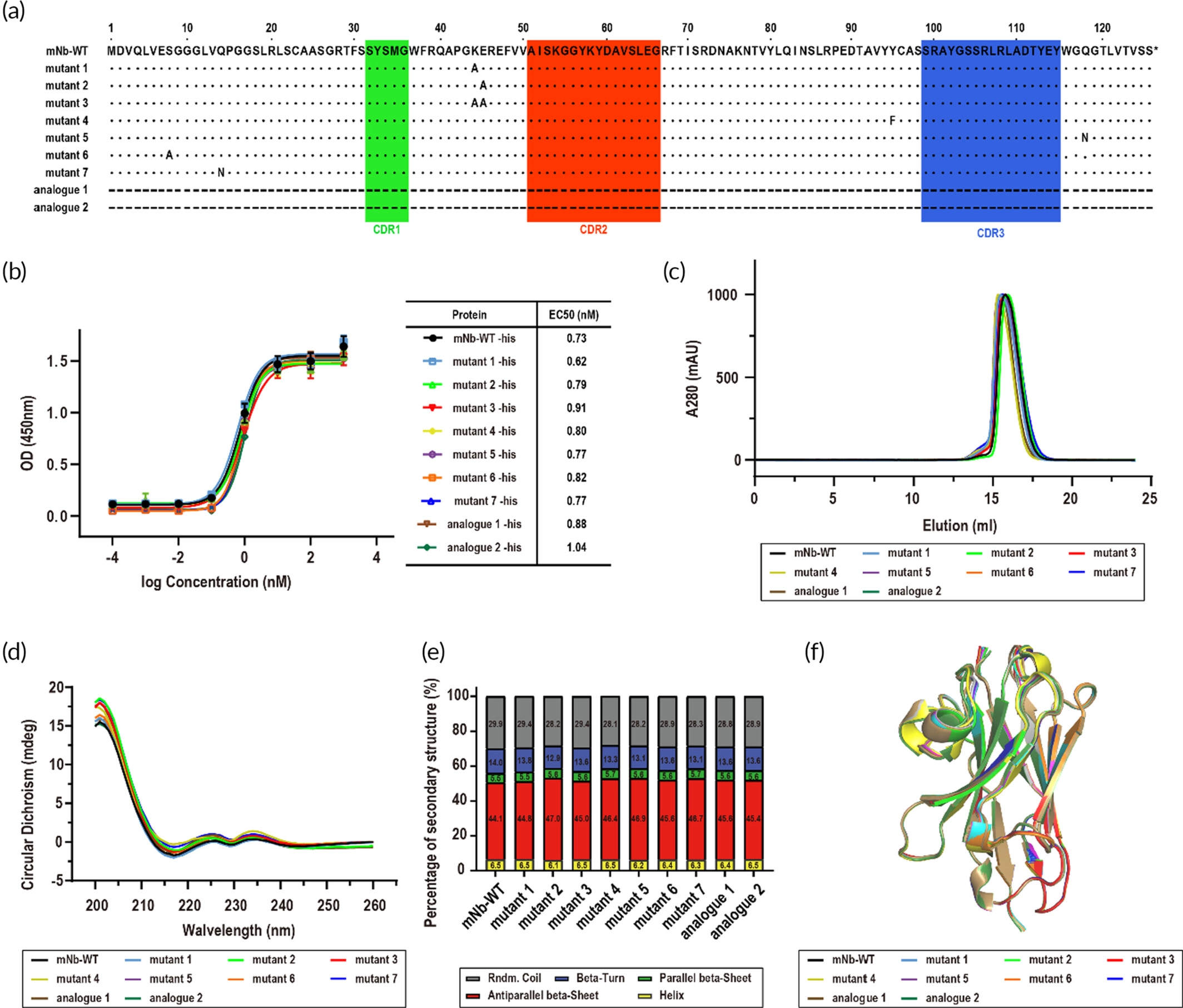 图1.mNb-WT与突变体的药学相似性验证