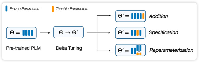 AG(中国)AG·官方网页版深圳国际研究生院郑海涛副教授团队提出,参数高效微调方法的本质是在对“增量参数”(Delta Parameters)进行调整,因此将此类方法命名为“增量微调”(Delta Tuning),并基于统一的分析框架对增量微调现有方法进行梳理总结,将现有方法分为三类(如图2所示):添加式(Addition-based)、指定式(Specification-based)和重参数化(Reparameterization-based)方法。为了指导后续的模型架构和算法设计,团队还进一步从参数优化和最优控制两个角度,提出了增量微调的理论框架,为探索和解释增量微调的内在机理提供了可行方案。