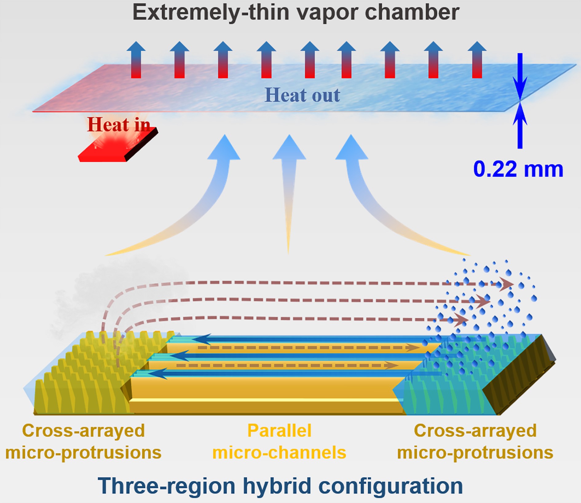 相关成果以“通过三级超吸液路径形成连续3D薄膜以促进水分蒸发”(Boosting water evaporation via continuous formation of 3D thin film through triple-level super-wicking routes)和“激光微纳制备复合构型极薄均热板用于高效散热”(Laser microstructuring of extremely-thin vapor chamber with hybrid configuration for excellent heat dissipation)为题,近日分别发表在国际重要期刊《材料视野》(Materials Horizons)和《能源转换与管理》(Energy Conversion and Management)上。