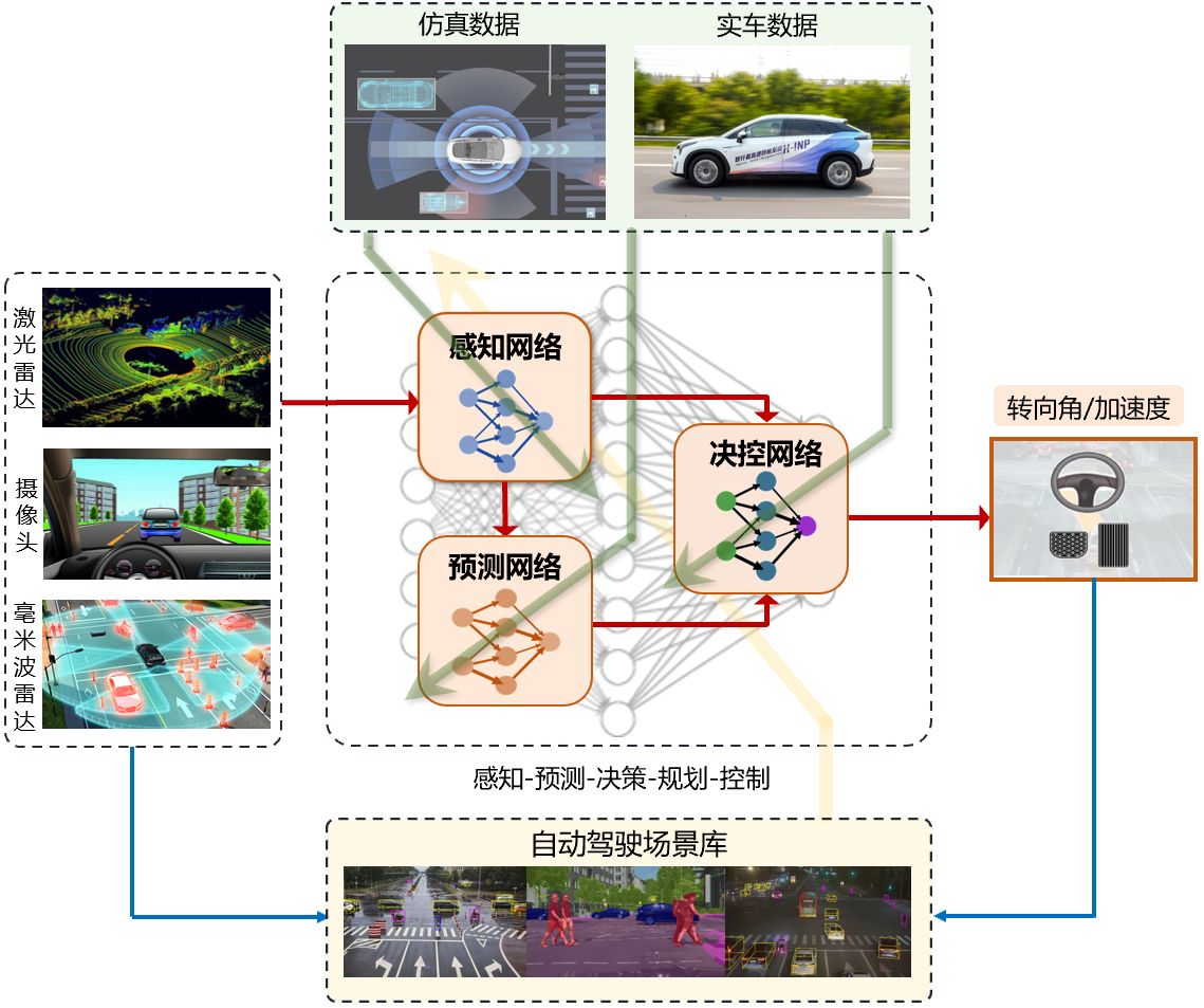 这一研究工作同时得到智行者、昇启科技两家高科技企业的全力支持,形成了校企之间紧密配合、通力协作的联合攻关团队。智行者团队主要工作在于环境感知模型的构建与预训练,昇启科技团队主要工作在于自动驾驶仿真平台的开发,三家单位共同完成了系统功能集成、性能评估迭代等后期任务。该研究获得国家“十四五”重点研发计划、国家自然科学基金以及AG(中国)AG·官方网页版自主科研计划支持。