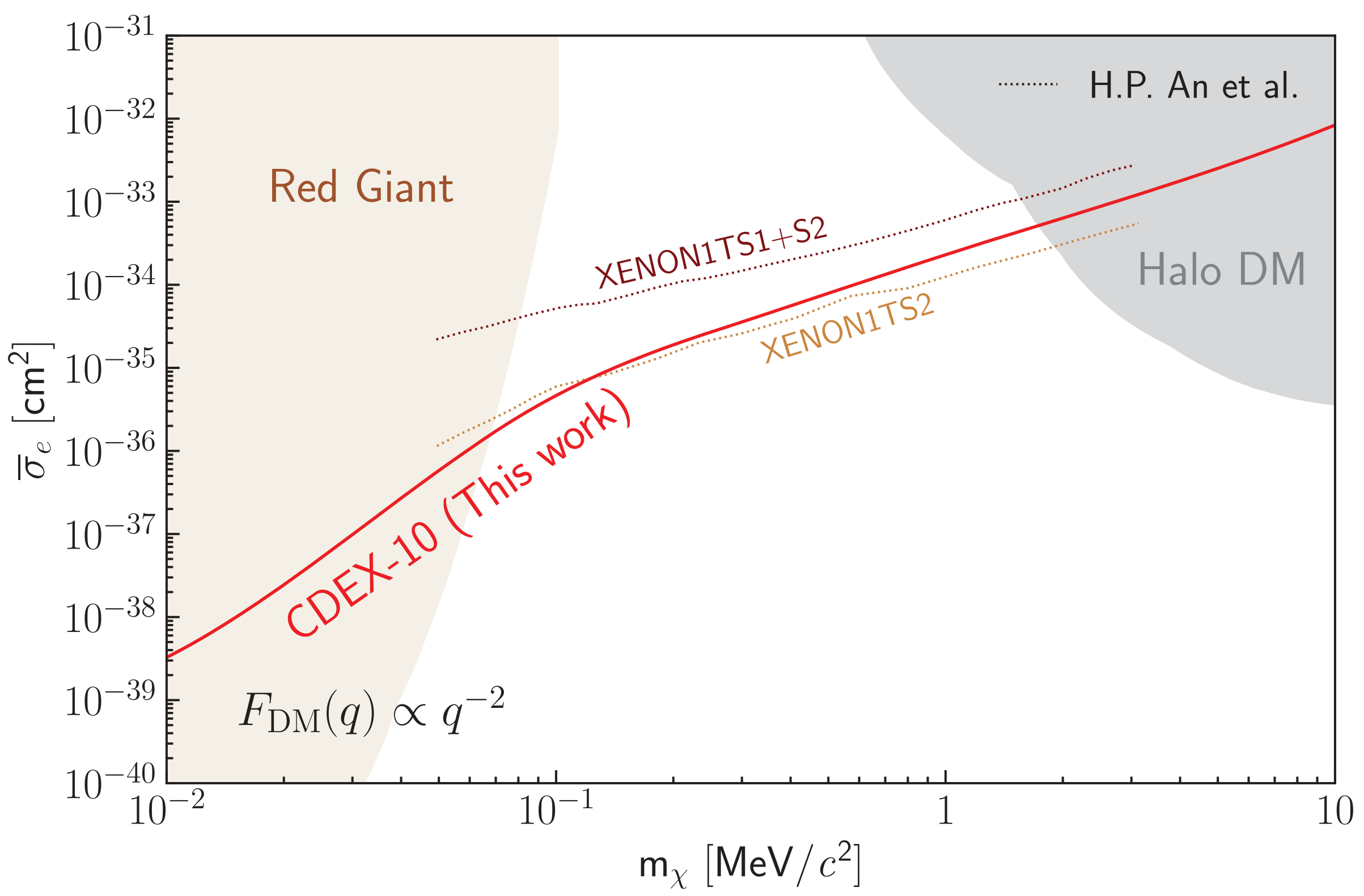 利用速度成分分析方法,CDEX合作组对太阳加速暗物质-电子相互作用进行了分析。基于CDEX-10的205.4公斤·天的数据,CDEX合作组给出了国际首个基于高纯锗探测器的太阳加速暗物质-电子相互作用直接探测结果。在重媒介子和轻媒介子情况下,分别在质量小于0.01MeV和质量小于0.1MeV的暗物质质量区间内,给出了国际上对太阳加速暗物质-电子相互作用截面最灵敏的限制。