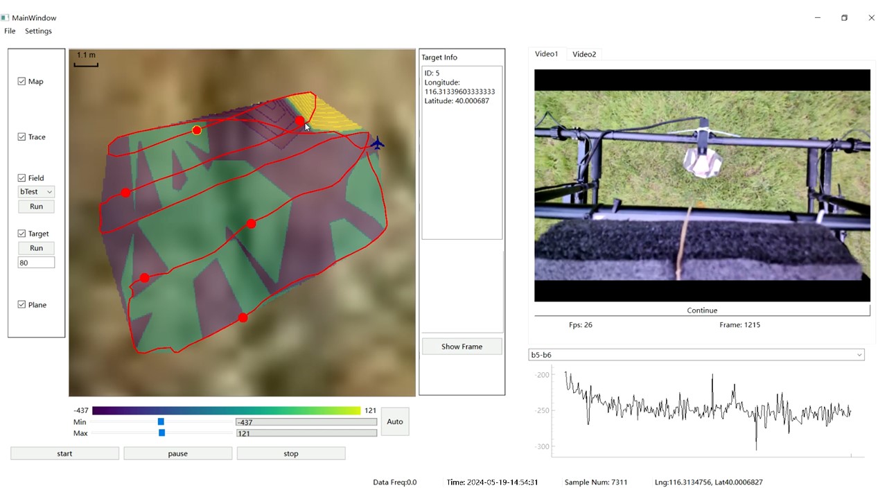 此次亮相旨在验证低空无人机平台下的探测能力和性能参数。探测目标选择了弱磁信号的空心小铁皮桶,其磁信号范围在200nT-2000nT之间。目标上面覆盖防汛沙袋或石块,并置于草坪或水池。无人机可探测飞行高度10cm至500cm,飞行速度可达6m/s,可垂直和悬停探测。整个活动实现了全部水陆金属目标的探测无遗漏,并能实现厘米级定位,即时绘制各水陆目标的磁力图。