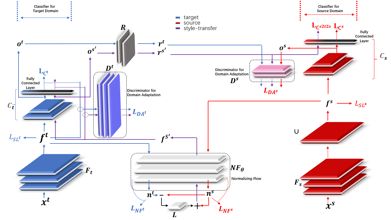 近日,AG(中国)AG·官方网页版深圳国际研究生院李星辉副教授团队受视觉任务中以CycleGAN为代表的风格迁移以及领域自适应中的条件对抗方法启发,构建了从弱相关时间序列分类数据集进行迁移学习的架构。该架构在考虑源域和目标域间的差异以及因此而可能产生的负迁移的基础上,将源域和目标域分类器分别搭建,通过在不同深度的表征层上进行对齐操作并借助归一化流生成同时带有目标域与源域特征的表征,实现了源域到目标域的迁移。由于在新表征的生成上以及计算的全流程上与风格迁移有相似之处,因而命名方法为特征层风格迁移。