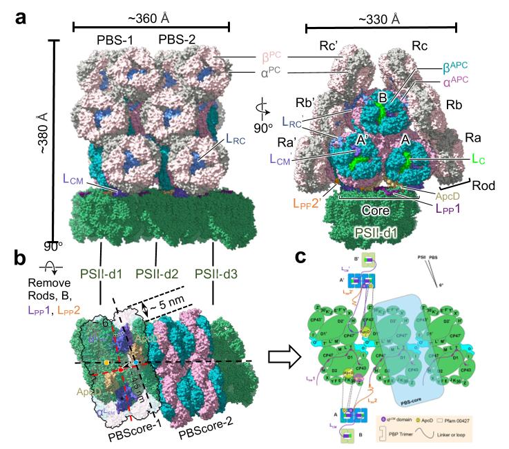 图2.原位蓝藻PBS-PSII超级复合体的结构