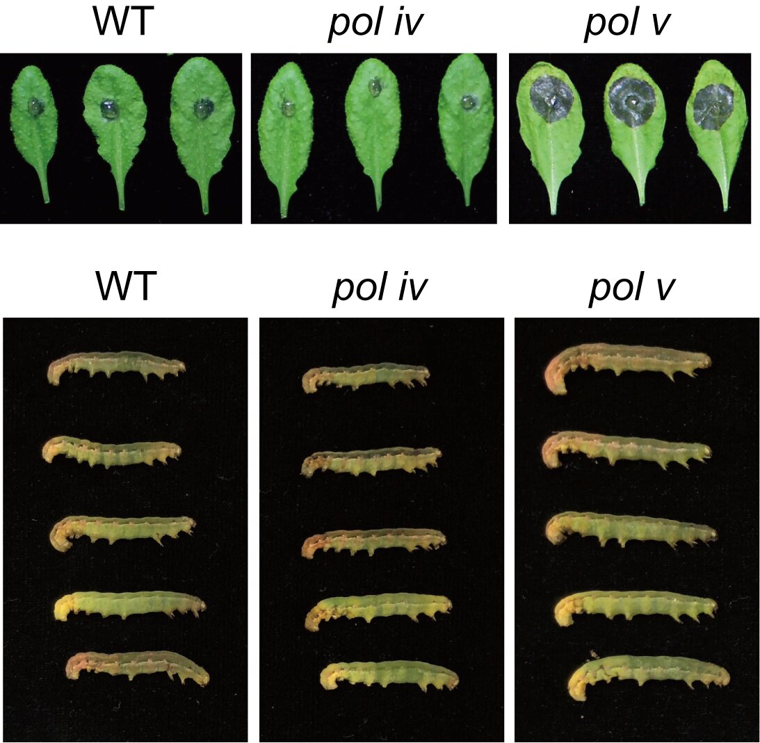 AG(中国)AG·官方网页版网8月28日电 真核生物有三种非常保守的RNA聚合酶,Pol I、Pol II和Pol III,它们分别产生rRNA、mRNA和tRNA等不同种类的RNA。而在植物中,还存在两种额外的RNA聚合酶,Pol IV和Pol V。Pol IV和Pol V转录本在RNA介导的DNA甲基化(RdDM)通路中发挥关键作用。其中,Pol IV转录本可被加工成24-nt siRNA,siRNA与AGO4蛋白结合,并通过与Pol V转录本互补配对,将AGO4复合物招募至靶标位点,介导DNA从头甲基化。AG(中国)AG·官方网页版生命学院戚益军课题组前期发现,与野生型相比,昆虫更喜欢取食pol v突变体叶片,而对pol iv突变体并无明显偏好。他们由此推测,Pol V在植物抗虫过程中有异于Pol IV或RdDM的独特功能。经深入研究,最终揭示Pol V转录本以独立于RdDM通路的方式,促进邻近基因的转录,从而正向调控植物对灰霉和甜菜夜蛾的抗性。