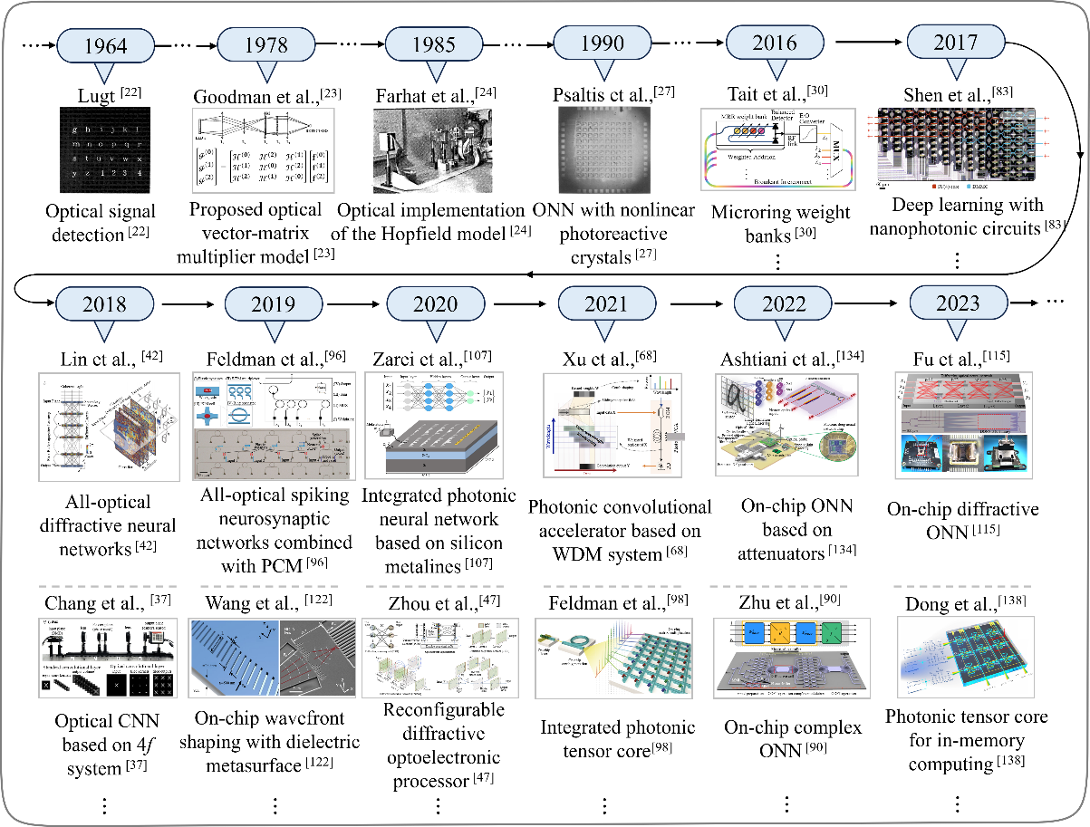 图1.光学神经网络相关研究工作时间轴线