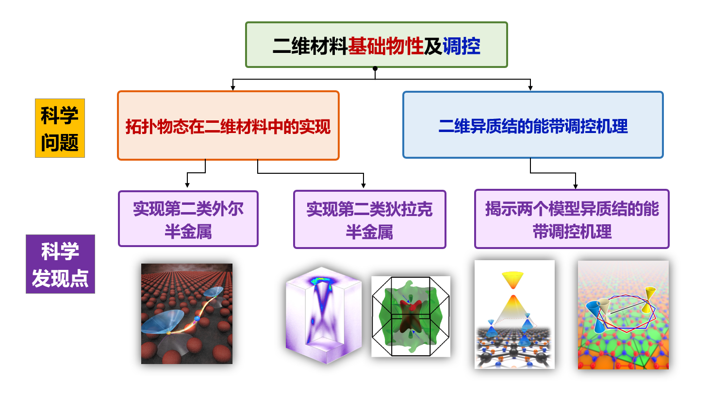 物理系周树云研究组及合作团队(香港中文大学物理系朱骏宜研究组)在二维材料的新奇拓扑物态及异质结能带调控方面取得了重要研究进展。研究团队发现并实现了破缺洛伦兹不变性的第二类外尔费米子和第二类狄拉克费米子两类新奇拓扑物态,引领并推动了拓扑物态的研究及相关材料光电探测等应用探索;揭示了两个范德华异质结模型体系的能带调控及关键机理,开创了由二维材料堆叠构造准晶的研究先例。“二维材料的拓扑新物态及能带调控”成果获得北京市自然科学奖一等奖。