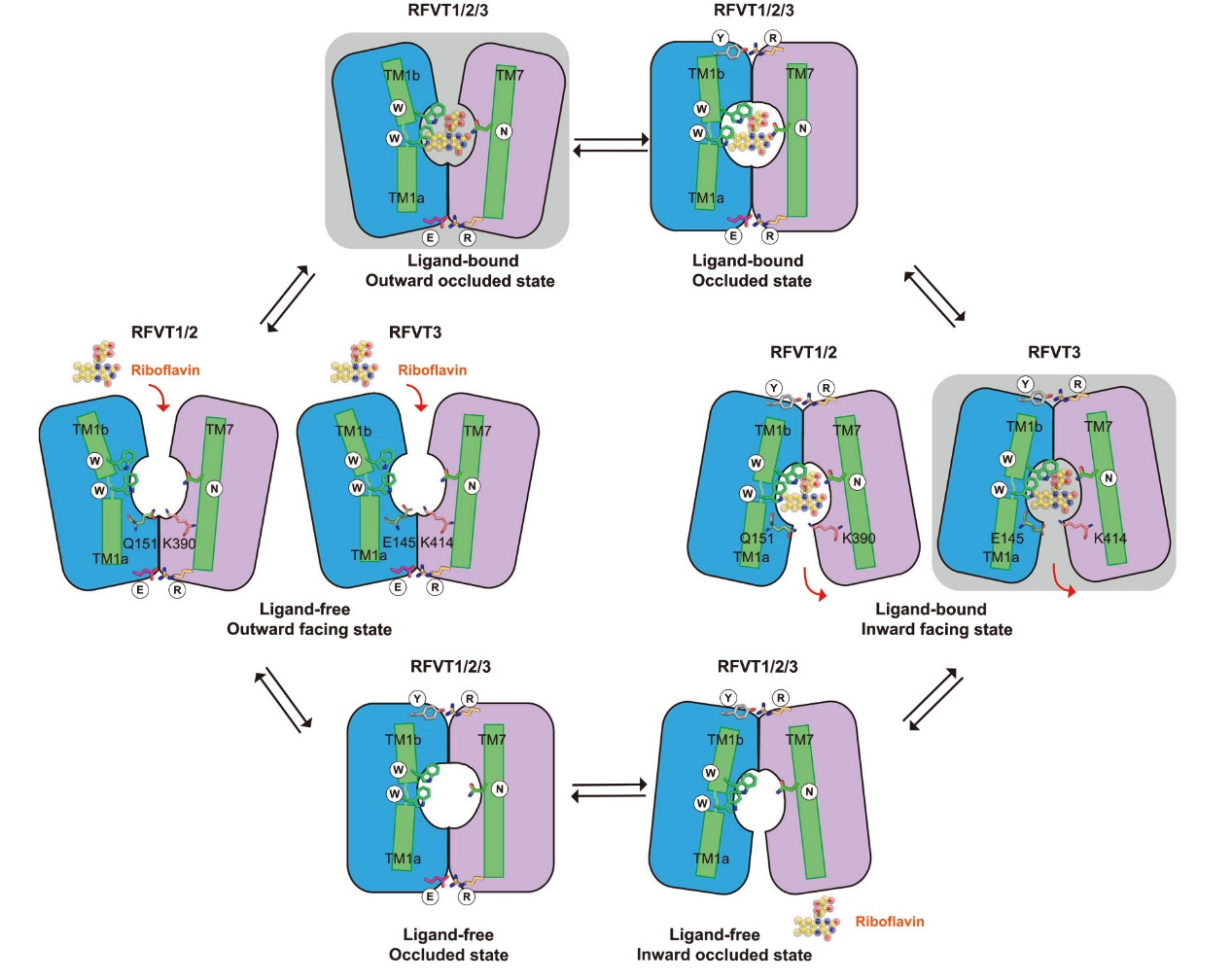 相关研究成果以“人核黄素转运蛋白的结构和转运机制”(Structure and transport mechanism of human riboflavin transporters) 为题,于5月1日发表于《自然·通讯》(Nature Communications)。