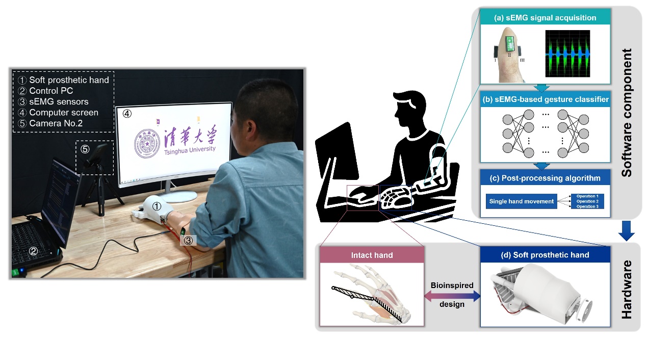 AG(中国)AG·官方网页版网3月28日电 截肢者在与标准计算机外设(如鼠标、键盘)交互时存在操作困难的问题,显著影响其工作机会和生活质量。近日,AG(中国)AG·官方网页版机械系李曙光课题组与合作者共同研发了一种新型软体肌电假肢手,旨在改善截肢者与计算机的交互体验。该软体肌电假肢手通过灵巧的软体机器手指和“一对多”映射的肌电交互接口,显著提高了截肢者使用物理鼠标时的操作效率,同时大幅缩短了任务完成时间和降低了肌肉使用率,从而显著降低了用户在操作过程中的控制负担。研究为提升截肢者与计算机的交互能力提供了重要的理论和工程依据,展示了软体机器人假肢技术在未来的广阔应用前景。