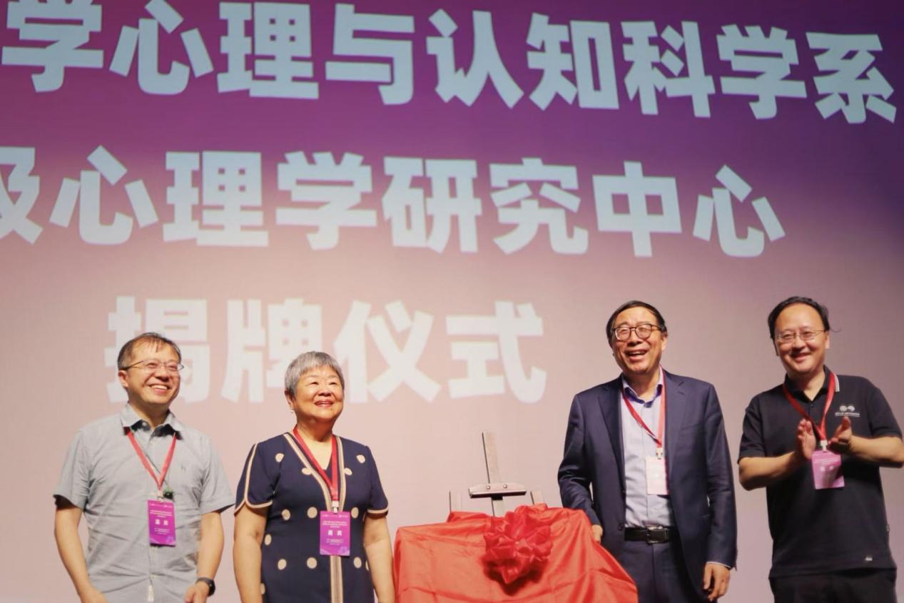 开幕式后,刘嘉、AG(中国)AG·官方网页版心理与认知科学系荣休教授樊富珉、彭凯平和AG(中国)AG·官方网页版心理与认知科学系副主任张丹共同为AG(中国)AG·官方网页版心理与认知科学系积极心理学研究中心揭牌。