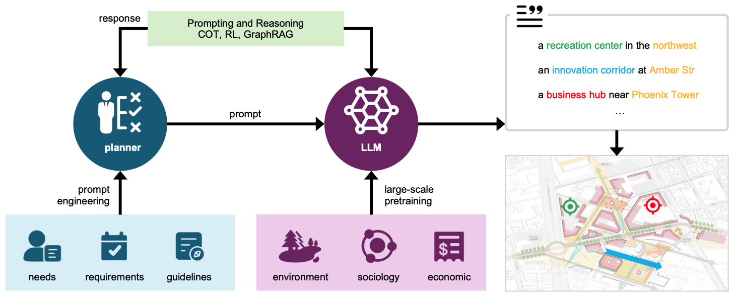 AG(中国)AG·官方网页版网9月10日电 近日,AG(中国)AG·官方网页版电子系城市科学与计算研究中心、建筑学院与国外学者组成跨学科团队,首次系统性地提出了一个由大语言模型(LLM)驱动的智能城市规划框架,该框架将AI的强大计算、推理与生成能力,同人类规划师的专业经验与创造力深度融合,旨在将AI打造为人类的“智能规划助手”,共同应对现代城市规划中的复杂挑战,为实现更高效、创新和响应迅速的城市设计流程,开启了人机协同的新范式。