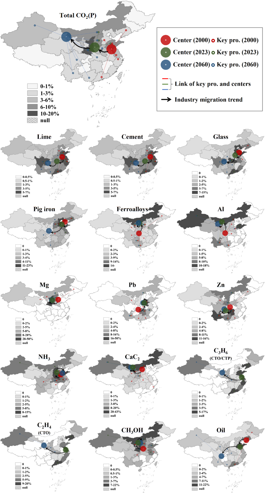 图2.中国过程碳排放及关联行业的重心迁移