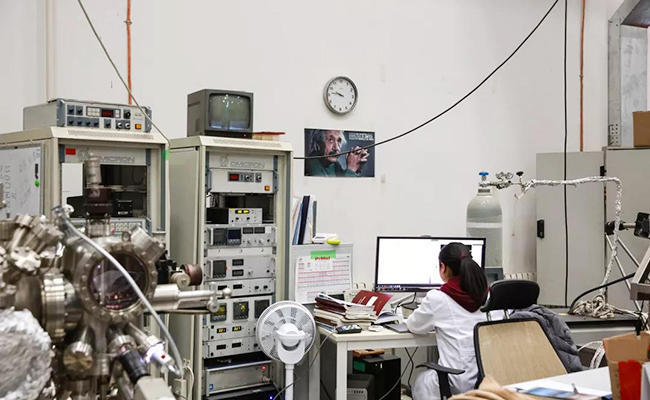 团队的实验室仿佛一个科幻世界,复杂的管线连接银白色锡纸裹着的不锈钢腔体,就在这些金属腔体中,原子飞行、凝聚、慢慢形成具有特殊性质的物质。这些仪器被称为分子束外延,内部处于接近月球表面的超高真空状态。进入实验室的人需要非常小心,避免碰到工作中的仪器,否则有可能会让他们几天的工作前功尽弃。
