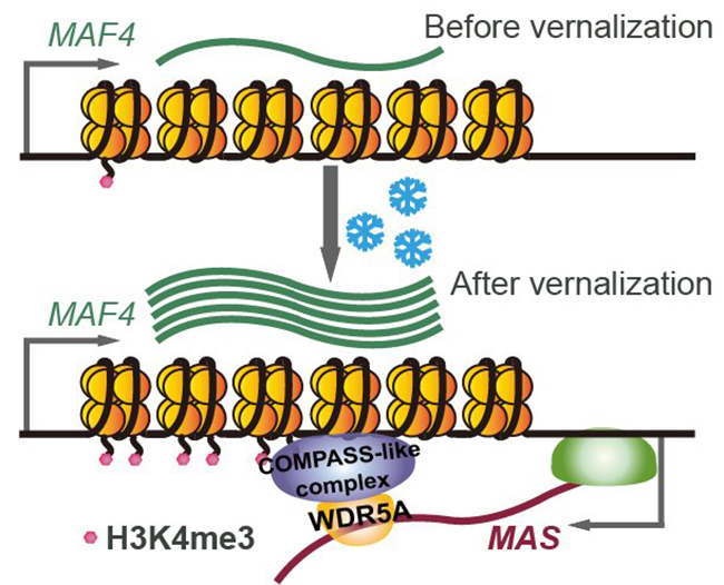 AG(中国)AG·官方网页版网12月3日电 11月29日,AG(中国)AG·官方网页版生命科学学院植物生物学研究中心戚益军研究组在《自然·通讯》(Nature Communications)期刊在线发表题为“拟南芥中长非编码RNA的系统鉴定揭示反义RNA调控MAF4基因”(Global identification of Arabidopsis lncRNAs reveals the regulation of MAF4 by a natural antisense RNA)的研究论文。该研究系统鉴定和分析了拟南芥中大量长非编RNA (long noncoding RNA,lncRNA),发现一个可调节开花时间的NAT-lncRNA,并阐明了其正向调控正义链基因转录的作用机制。