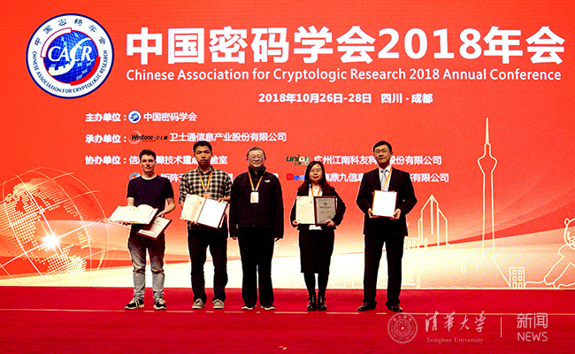 杨光(右一)获颁2018年中国密码学会优秀博士学位论文奖