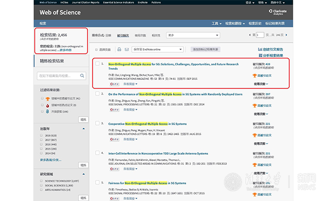 该论文在Web of Science数据库收录的2457篇NOMA主题相关论文中引用次数排名第一