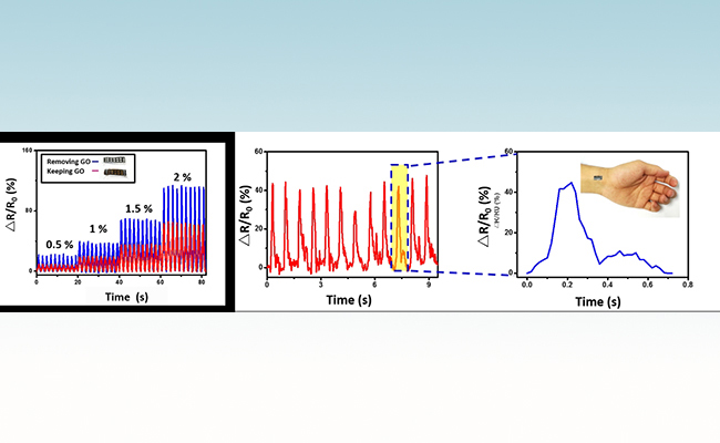 电子皮肤是一种重要的生物医学传感器,要求器件拥有好的柔韧性和可伸缩性、高灵敏度、好的贴合度和舒适度。石墨烯由于其出色的导电性和柔韧性,是电子皮肤的理想材料。但是将石墨烯更加舒适、美观、稳定、可靠地贴合在皮肤表面,从而采集各种生理信号仍然是一个亟待解决的问题。