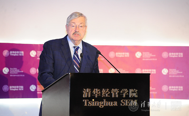 国际注册专业会计师公会理事会主席金伯利·埃利森泰勒女士,美国驻华大使特里·布兰斯塔德(Terry Edward Branstad),清华经管学院院长钱颖一,国际注册专业会计师公会首席执行官、美国注册会计师协会总裁兼首席执行官巴利·梅兰科(Barry Melancon)等出席并致辞。