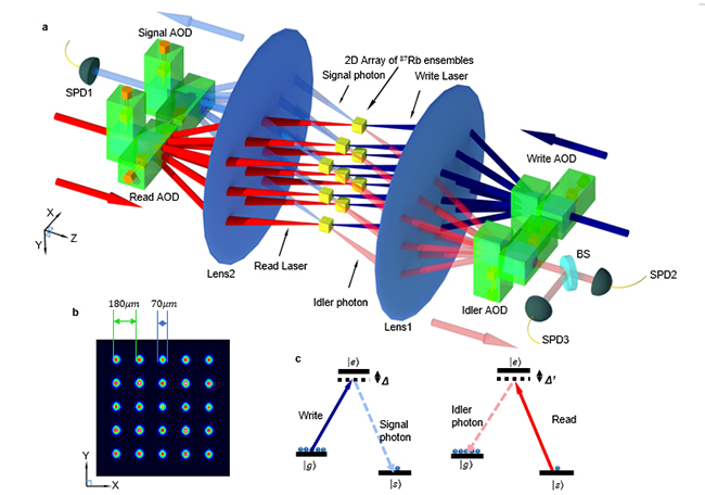 为了实现更多量子接口间的纠缠,构造更大的量子纠缠网络,段路明研究组研发了新颖的二维量子接口阵列,解决了相关技术问题,可以方便地实现多个量子接口间的纠缠。研究人员通过光束复分技术,独立寻址并相干调控5×5的量子接口阵列,制备了多体量子纠缠态。在25个量子接口之间,实验利用纠缠判据以高置信度证明至少存在22体以上的真实纠缠,刷新了量子接口纠缠数量的世界记录。