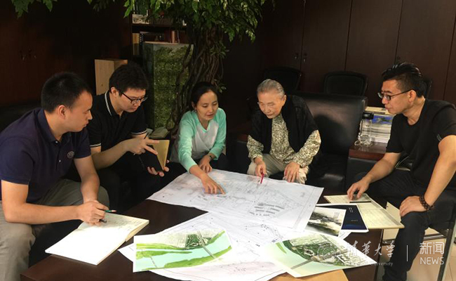 张锦秋院士和设计团队讨论建筑方案。