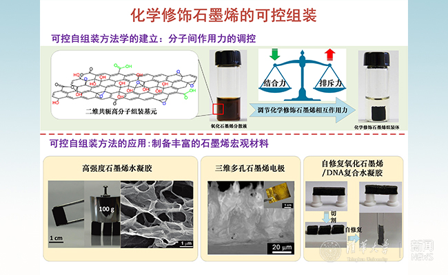 同时,团队在国际上率先开展了化学修饰石墨烯溶液组装行为、三维组装结构与性能的研究,制备了系列具有多维度、多级次微结构的石墨烯块体材料,并探索了其应用。“把石墨烯作为组装的基元,搭成三维组装的结构,最大限度地保持它的比表面积和单片的性质,可以做成薄膜、水凝胶、柔性电子器件等,这在国际上也是具有开创性的”,石高全说。