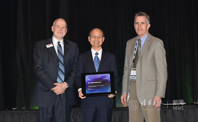 2月27日,学会总裁尤金·阿瑟斯(Eugene Arthurs)博士(左),年会主席、美国罗彻斯特工学院布鲁斯·史密斯(Bruce Smith)教授(右)共同为林庆煌博士(中)颁发铭牌。