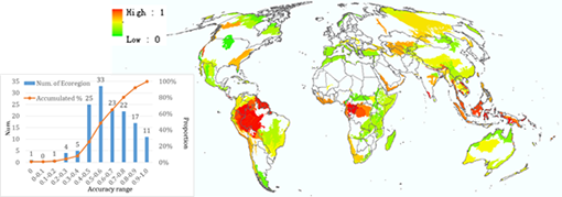 研究表明这些区域的连续观测数据和土地覆盖制图研究的数量和质量都还存在巨大的不足,具体表现为:仅有18%的生态区(指WWF Global 200的生态区)是全球土地覆盖文献的研究热点区域;仅有28个生态区的土地覆盖制图精度高于80%(该经度越高表征数据质量越好),但有36个生态区的精度低于50%;约有2/3的生态区没有自1985年以来的陆地卫星连续观测数据,特别是缺乏多时相的数据。这些数据与研究的欠缺,限制了追踪全球生物多样性丧失和生境破碎化的历史轨迹,也限制了从全球尺度开展变化驱动力分析。