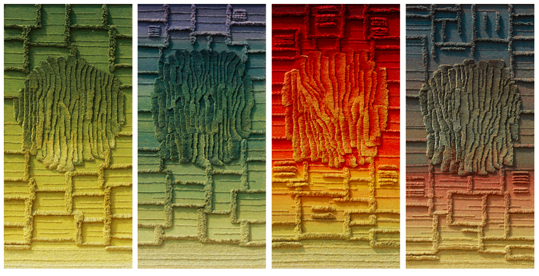图为纤维艺术特邀作品 林乐成《春夏秋冬》(第九届全国美展银奖)。