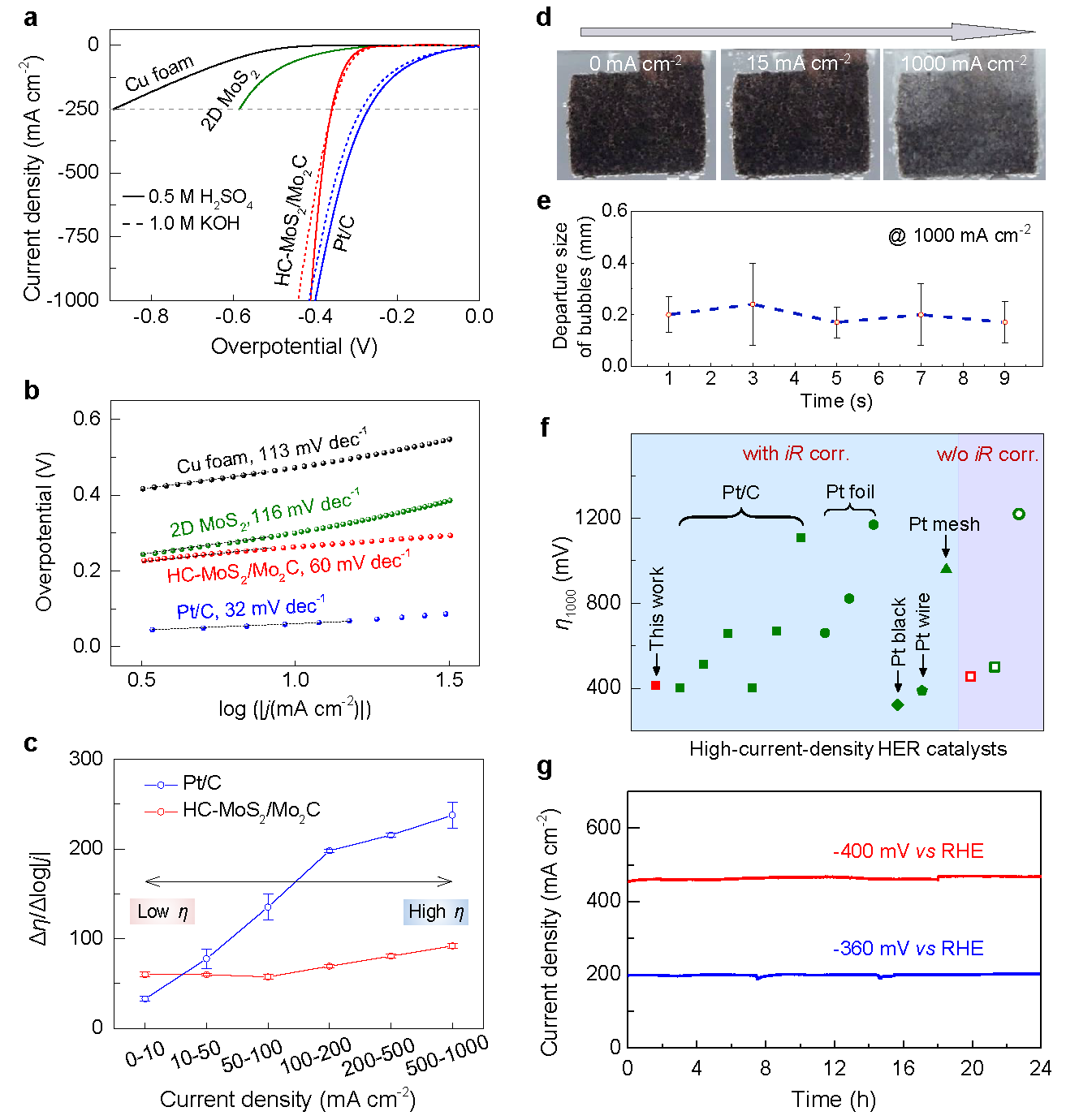 大电流密度下二维二硫化钼电解水产氢性能