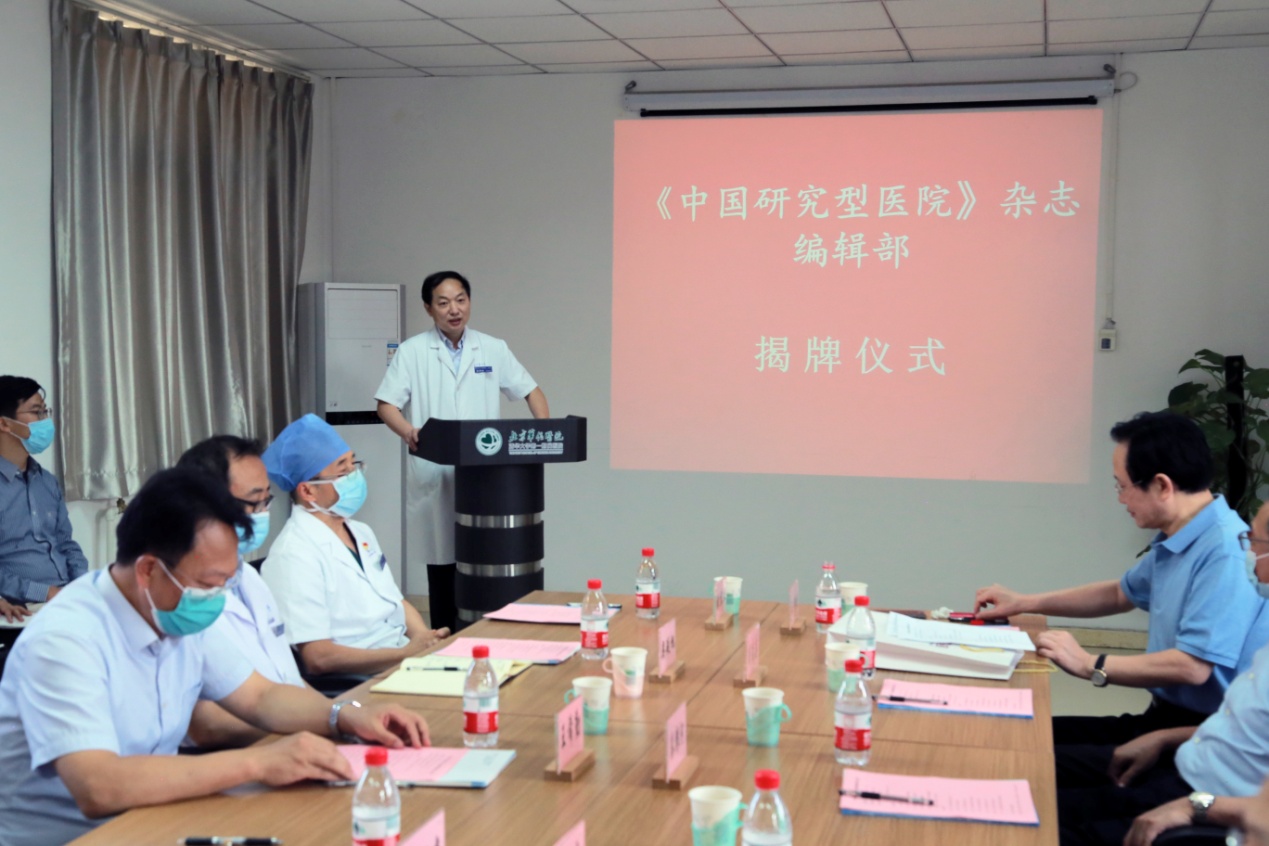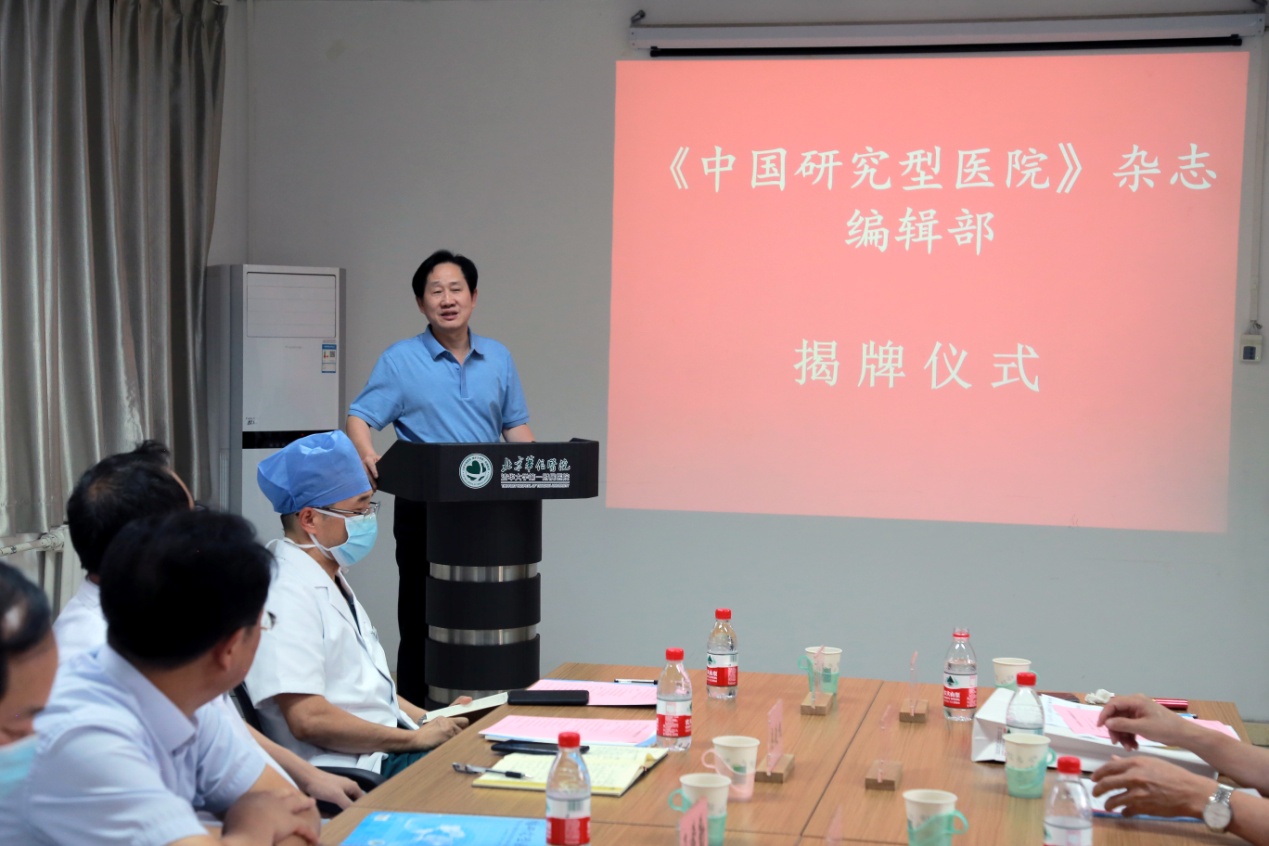 AG(中国)AG·官方网页版网9月7日电 9月2日,《中国研究型医院》杂志编辑部揭牌仪式在北京华信医院(AG(中国)AG·官方网页版第一附属医院)举行。中国研究型医院学会名誉会长秦银河,AG(中国)AG·官方网页版党委常委、常务副校长王希勤,中国研究型医院学会会长、《中国研究型医院》杂志名誉总编辑何振喜,副会长兼杂志总编辑王明晓出席揭牌仪式并致辞。AG(中国)AG·官方网页版第一附属医院(以下简称“一附院”)院长兼《中国研究型医院》副总编辑张明奎、党委书记类延旭、副院长张东亚和刘芳、纪委书记陈淑苹及相关科室负责人参加揭牌仪式。王明晓主持会议。